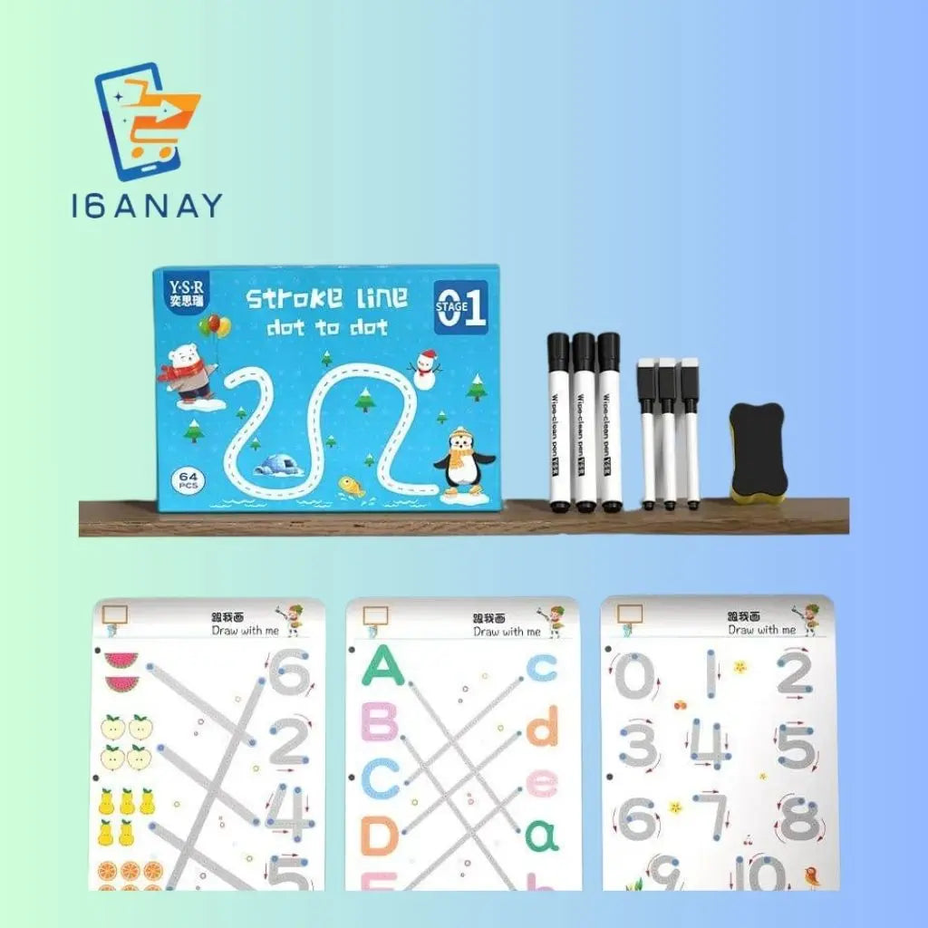 Stroke Line Dot to Dot Work Book With Pens & Eraser Level 1 - 64 Pages
